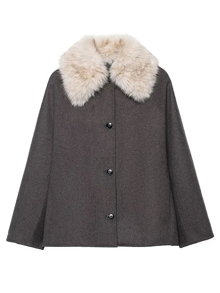 HH Women Fashion Faux Fur Lapel Woolen Coat Elegant Solid Long Sleeve Single Breasted Jackets Autumn Winter Lady Street Outwear