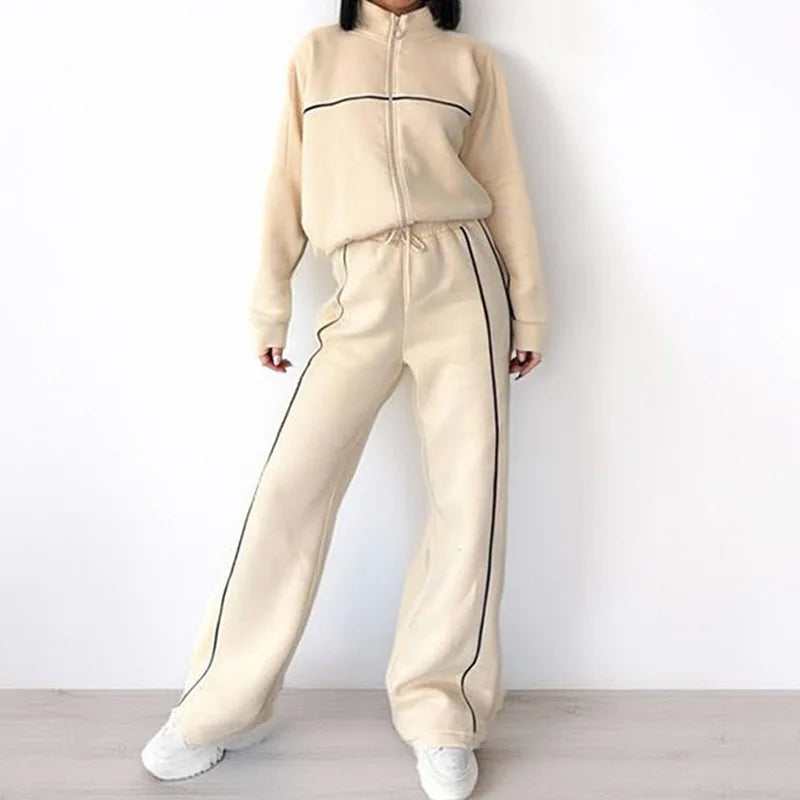 Autumn New Europe And The United States Suit Casual Half High Neck Zipper Cardigan Hoodie Lace-up Fashion Suit Women