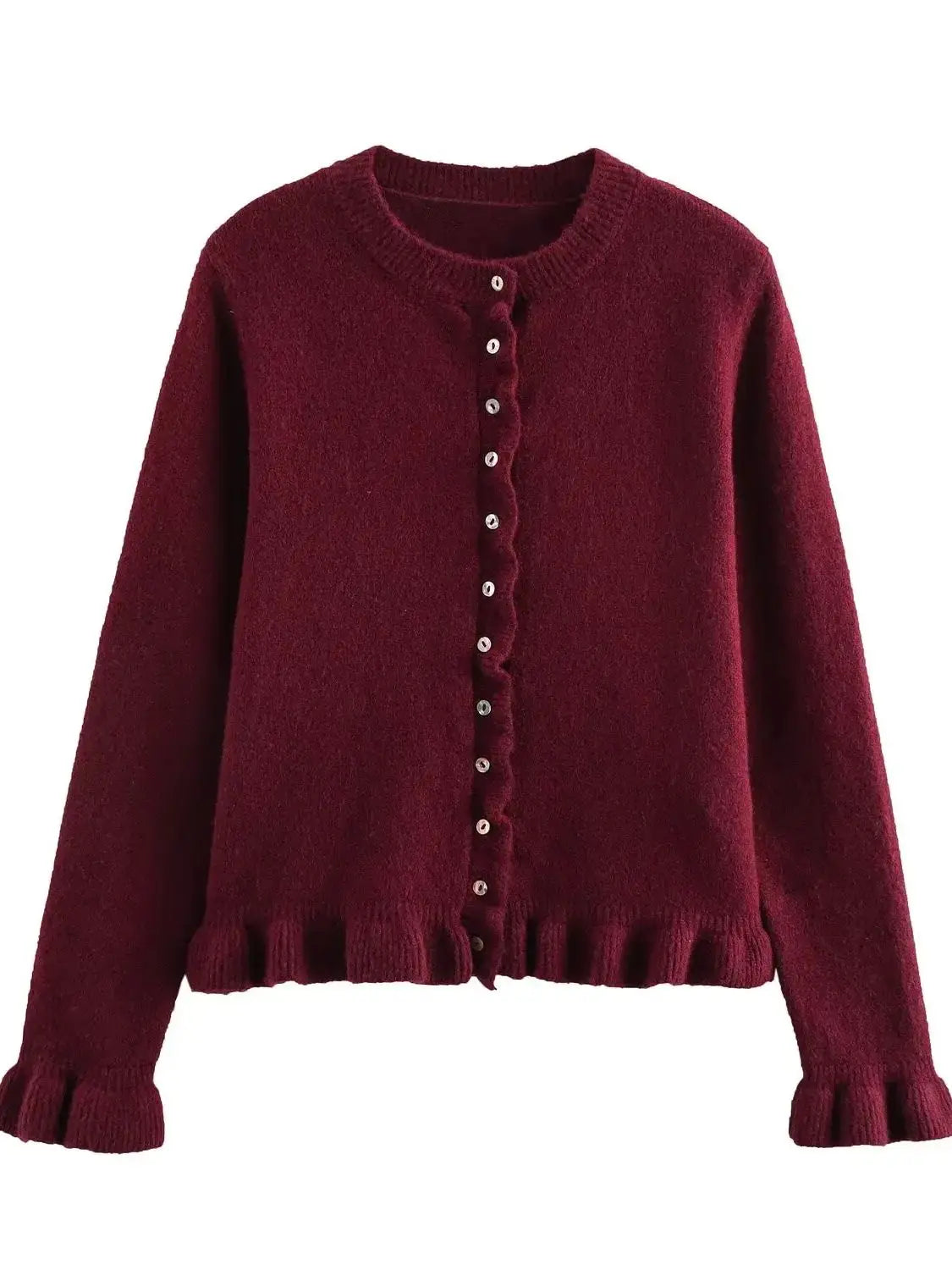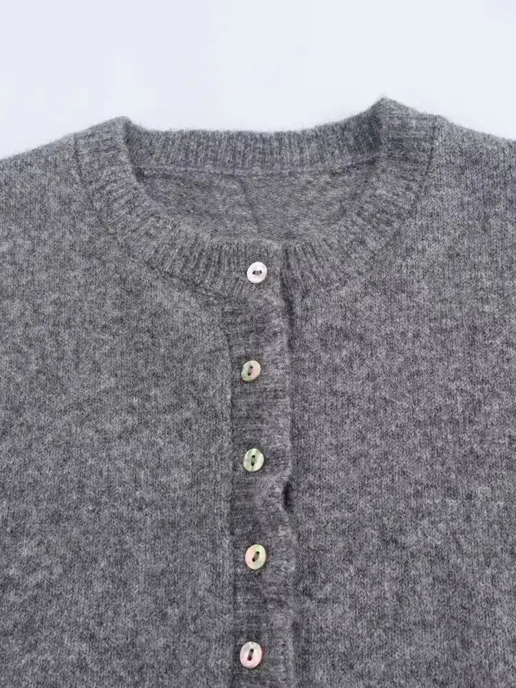 French Fashion Loose Sweater For Women O-neck Metal Button Cardigan Single Breasted Autumn Winter Casual Coat Female Outfit Tops
