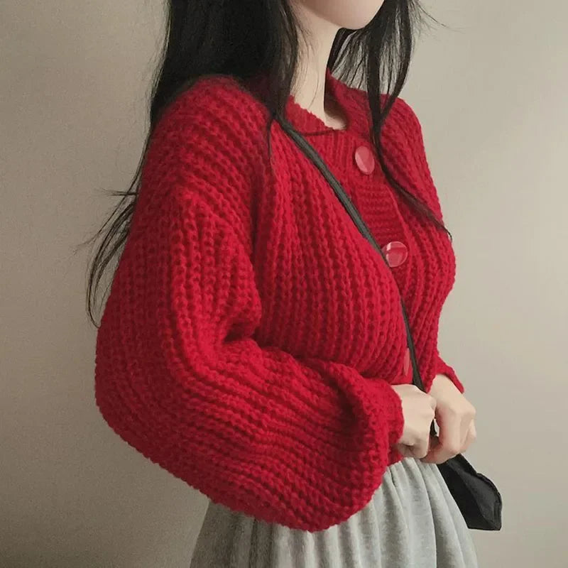 2025 Fall Winter Short Knitted Cardigan Women Thicken Warm Single-Breasted Sweater Female Solid O-Neck Long Sleeve Knitwear Coat