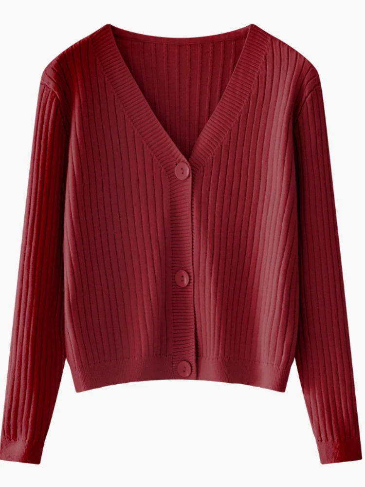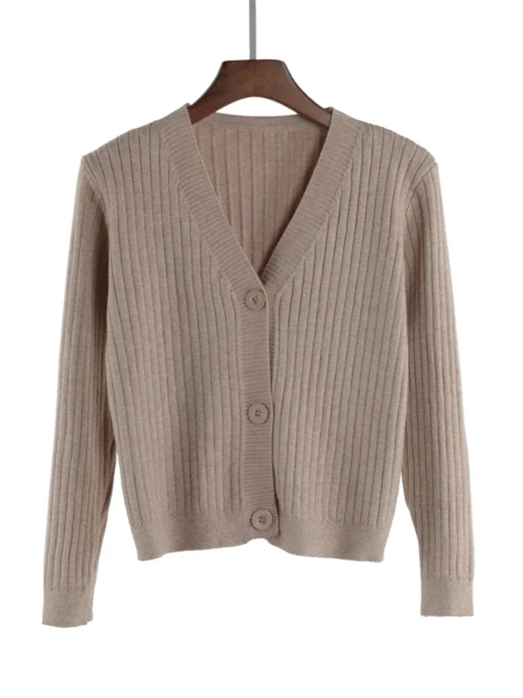 Women's Ribbed Cardigan Tops Spring Fall Solid Color Long Sleeve Round Neck Button Up Cropped Sweaters Female Casual Pullovers