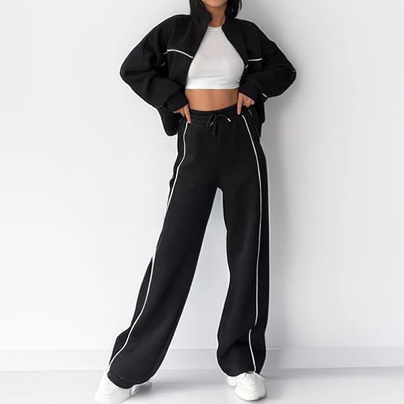 Autumn New Europe And The United States Suit Casual Half High Neck Zipper Cardigan Hoodie Lace-up Fashion Suit Women