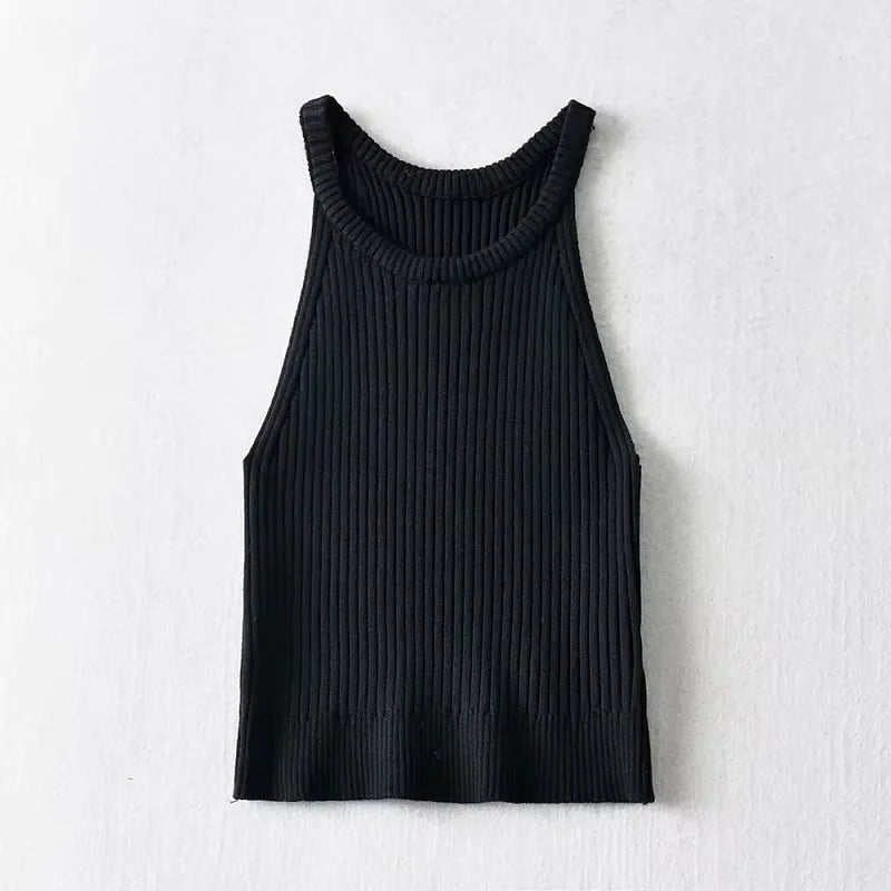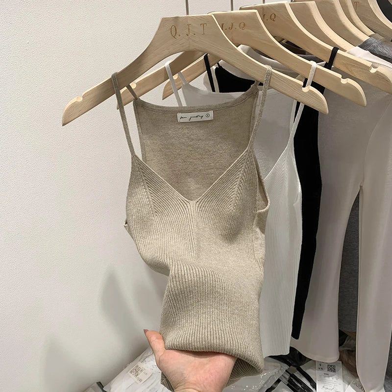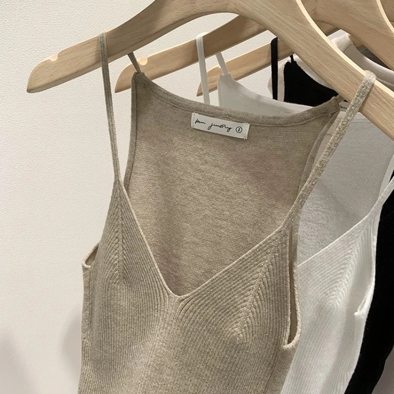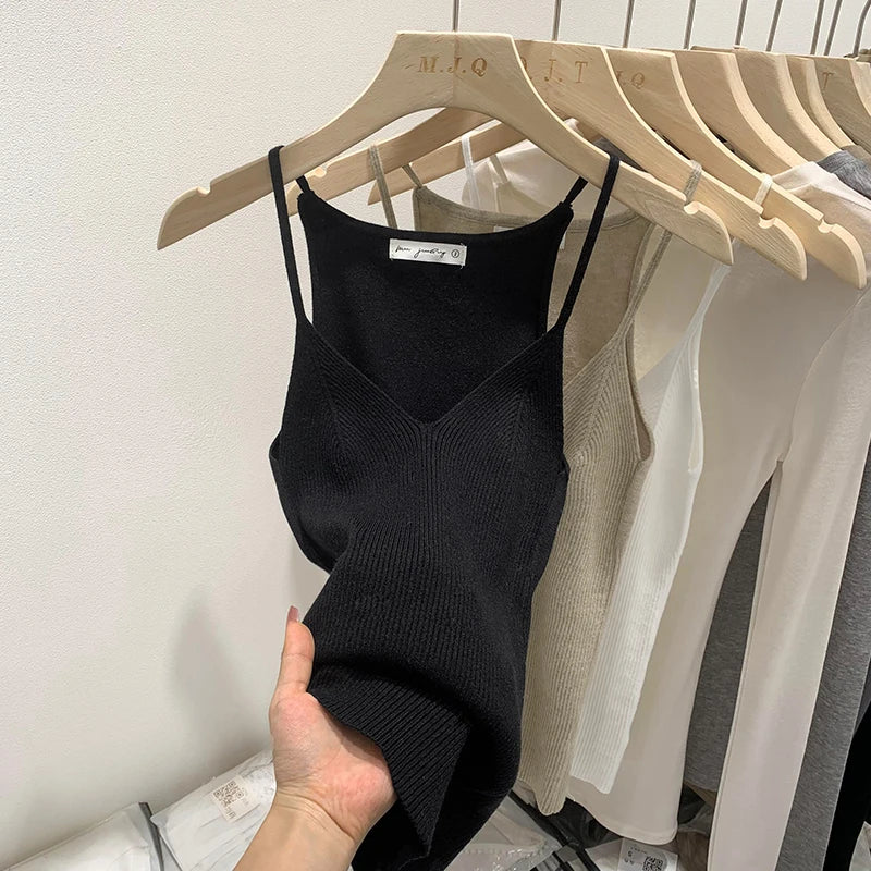 2025 Women Comfortable Solid ColorCamisole Laides Summer Bottoming WhiteShort Knitted Sleeveless Top