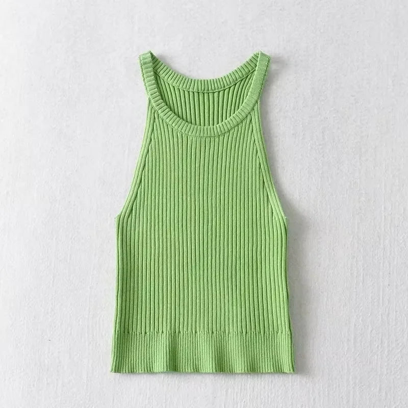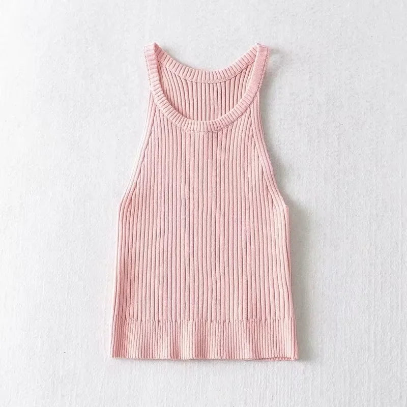 2025 Summer Women Sleeveless Tank Tops Fashion Crop Top O-neck Fitness Knitted Ribbed Vest Female Solid Camis Cropped Streetwear