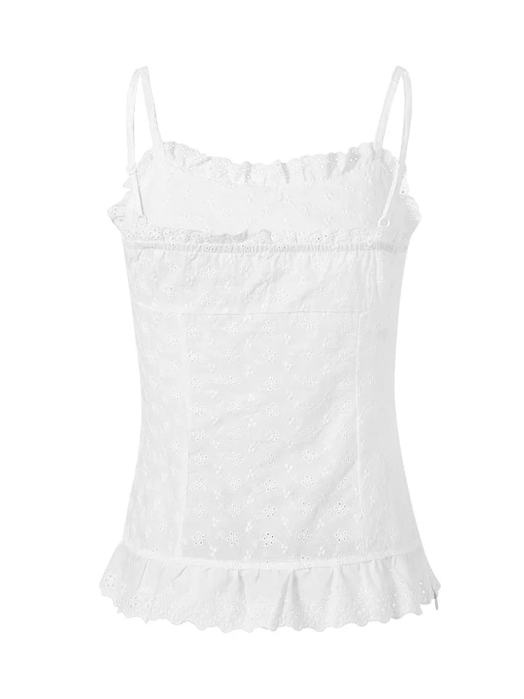 Women Lace White Corset Tank Tops Spaghetti Strap Sleeveless Camisole Tops Y2K Aesthetic Casual Summer Vest Shirts Female