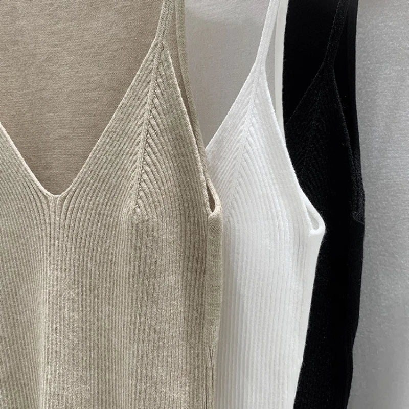 2025 Women Summer Style Sleeveless Vest Solid Color Slim Fit V Neck Knitted Top Fashionable Versatile Base Layer Knit Tank Tops