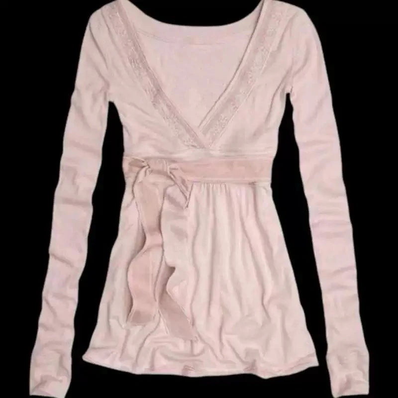 Y2K Pink Off Shoulder Long Sleeve Tops Women Letter Print Cute Sexy Shirt Solid Casual Aesthetic Joker Match Retro Clothing 2025